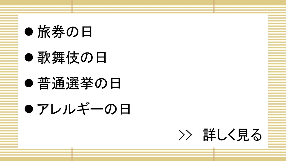 日本アレルギー協会(日ア協)が1995(平成7)年に制定。1966(昭和41)年、免疫学者の石松公成・照子夫妻が、ブタクサによる花粉症の研究からアレルギーを起こす原因となる免疫グロブリンE抗体(lgE抗体)を発見したことを発表した。