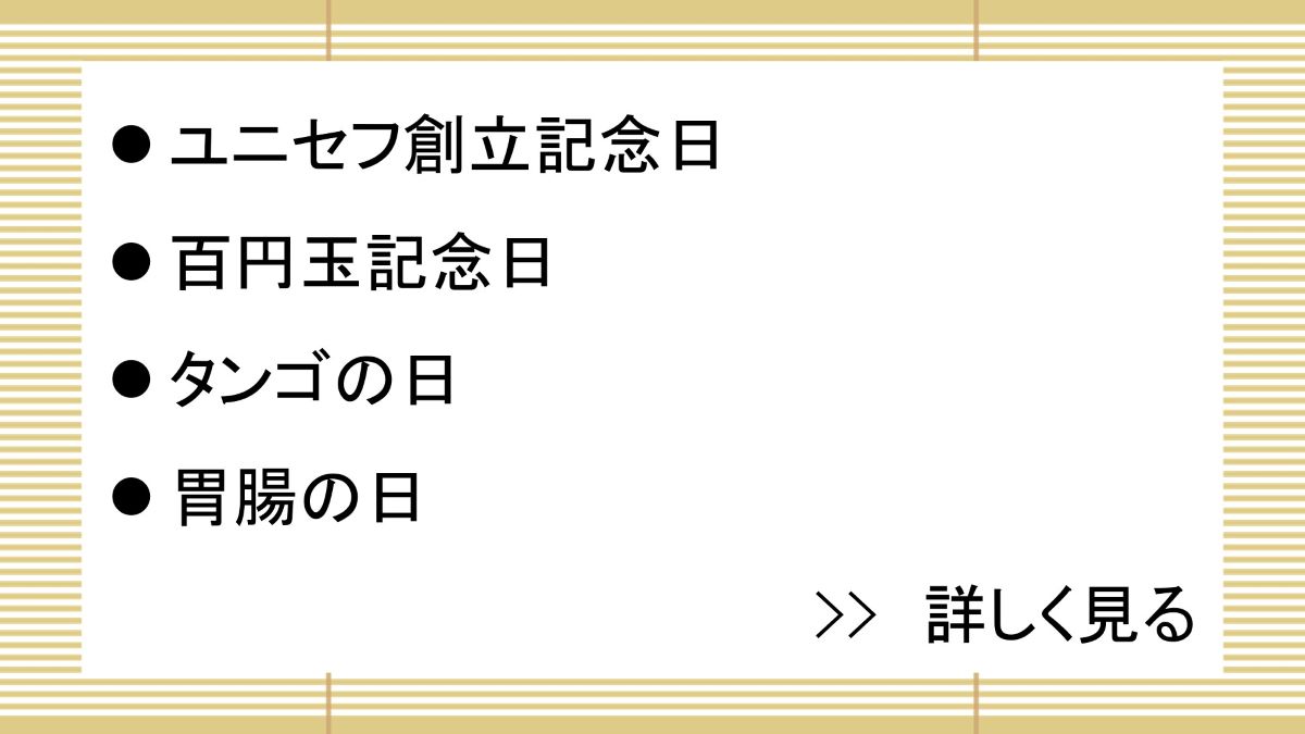 日本大衆薬工業協会が2002(平成14)年に制定。「いに(12)いい(11)」(胃に良い)の語呂合せ。