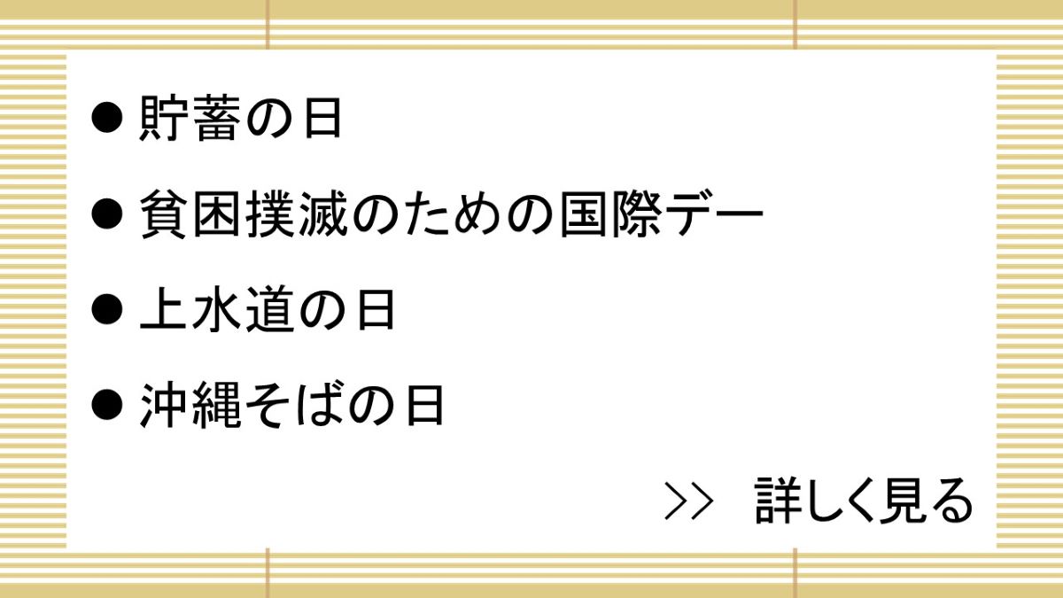 日本銀行貯蓄増強中央委員会(現在の金融広報中央委員会)が1952(昭和27)年の同委員会発足の際に制定し、翌年から実施。戦前まで実施されていた神嘗祭に因んで。勤労の収穫であるお金を大切にする日。