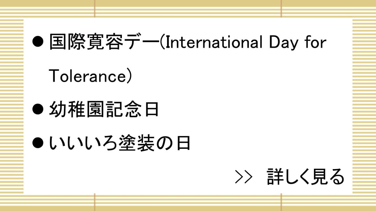 1996(平成8)年12月12日の国連総会で制定。国際デーの一つ。 1995(平成7)年、ユネスコ総会で「寛容原則宣言」と「国連寛容年のためのフォローアップ計画」が採択された。