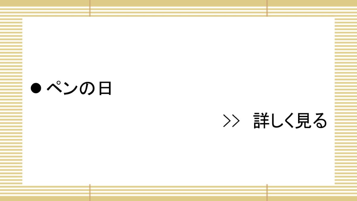日本ペンクラブが制定。1935(昭和10)年、日本ペンクラブが創立された。ペンクラブは、文学を通じて諸国民の相互理解を深め、表現の自由を擁護するための国際的な文学者の団体である。ペン(PEN)は、文字を書く道具としてのペンをあらわすとともに、Pは詩人(Poets)と劇作家(Playwrights)を、Eは随筆・評論家(Essayists)と編集者(Editors)を、Nは小説家(Novelists)をそれぞれ表す。