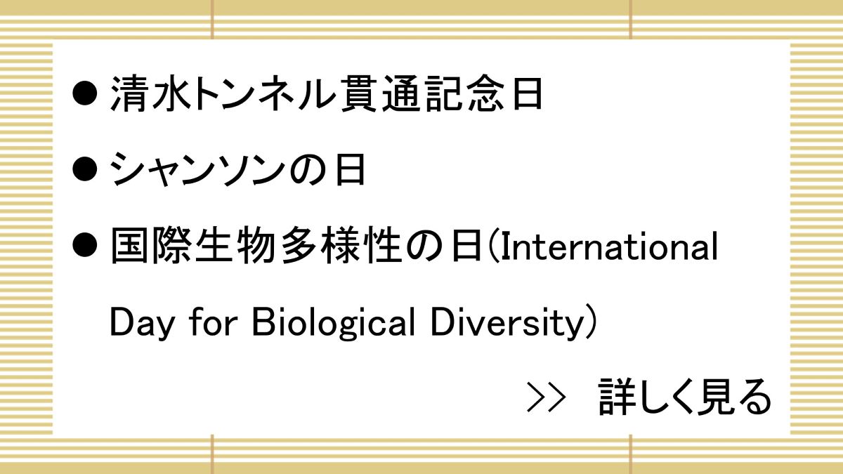 1994(平成6)年の「生物の多様性に関する条約」締約国会議で制定。国際デーの一つ。 2000(平成12)年から、5月22日に変更された。