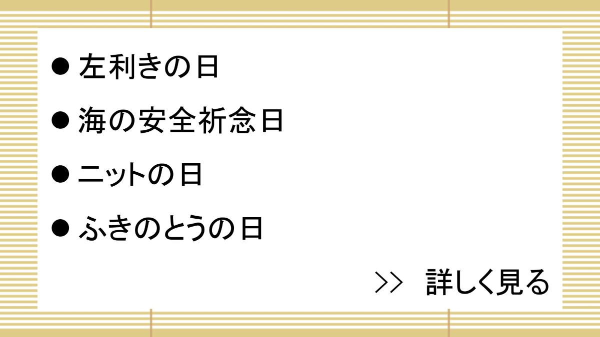 Japan Southpaw Clubが2001(平成13)年に制定。「レ(0)フ(2)ト(10)」の語呂合せ。既に8月13日が世界的な「左利きの日」となっていたが、日本ではお盆の時期に当りイベント等を開催するのが難しいため、別の日が制定された。