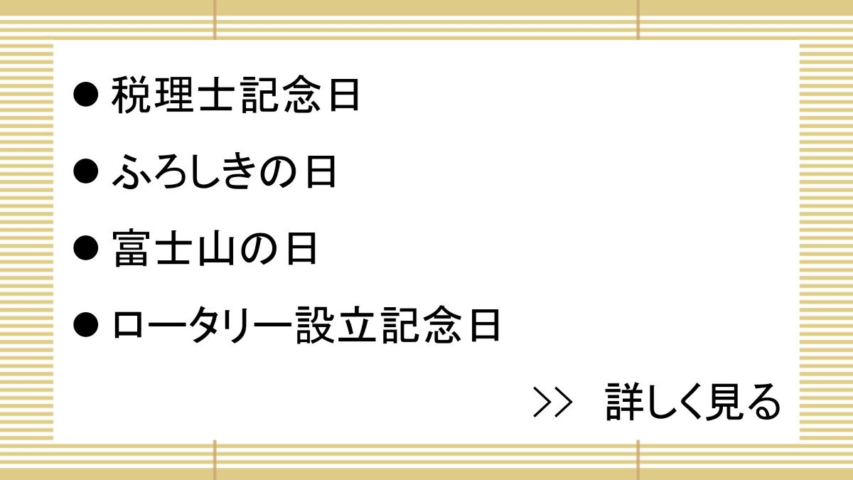 日本税理士会連合会が1969(昭和44)年に制定。1942(昭和17)年、「税理士法」の前身である「税務代理士法」が制定された。国民・納税者への申告納税制度の普及・定着をはかり、税理士制度の意義をPRすることを目的とし、この日には各地で無料税務相談が行われる。